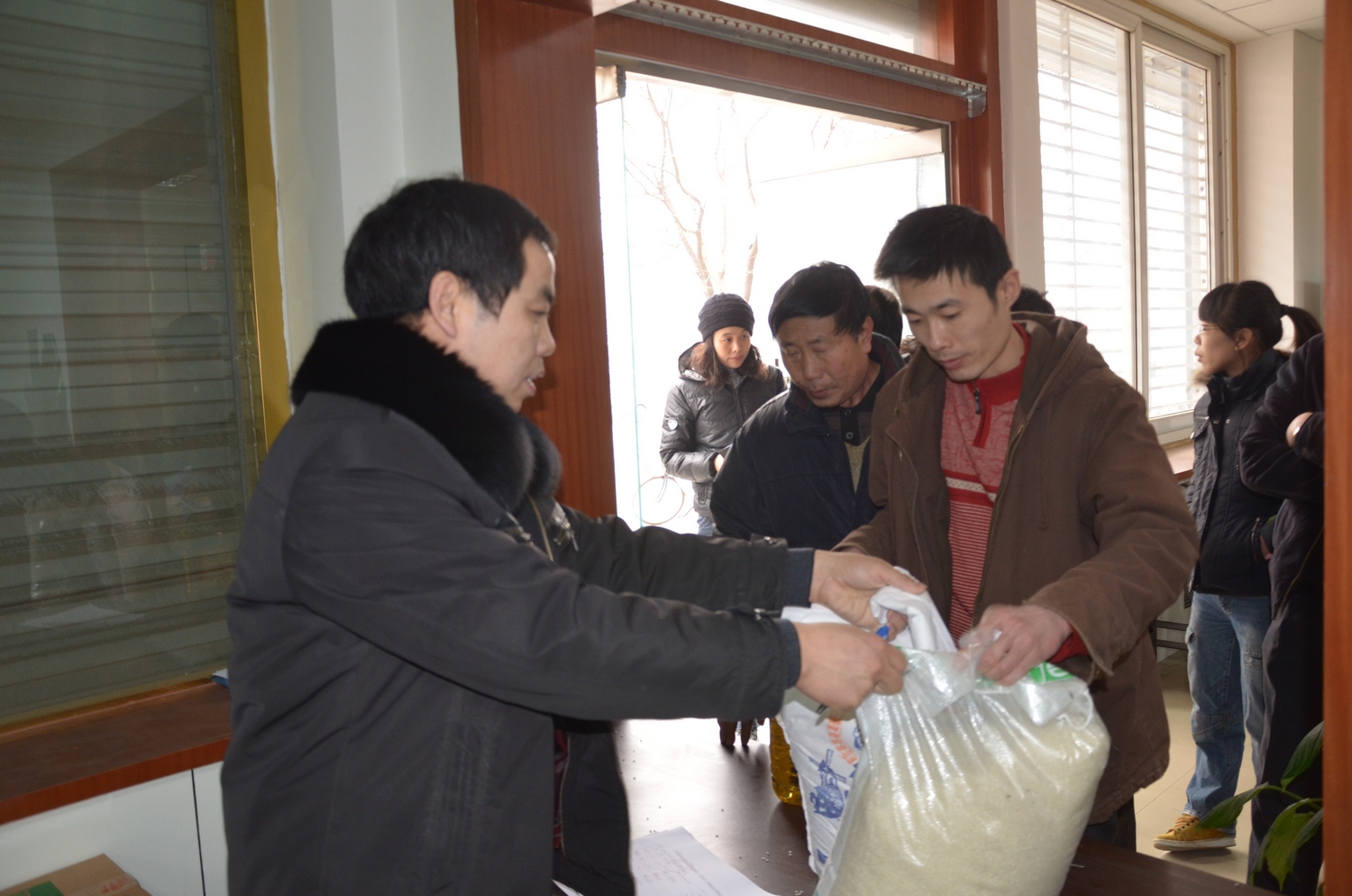2011年12月30日,市职工服务中心在元旦春节送温暖活动中为建筑行业一线困难职工、农民工发放救助金和米面油等生活用品。