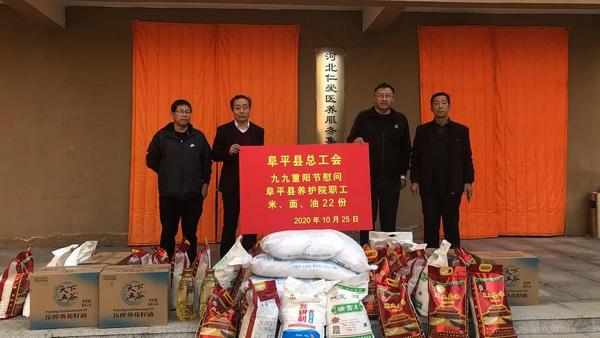 近日,阜平县www.365466.com_365bet登录地址_365体育app安装常务副主席张东光带领工作人员到阜平县养护院开展“重阳节”慰问职工活动,阜平县养护院院长孙立川及一线职工参加活动。