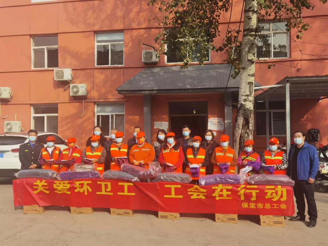 10月26日,保定市www.365466.com_365bet登录地址_365体育app安装开展了“关爱环卫工 工会在行动”慰问活动。市www.365466.com_365bet登录地址_365体育app安装二级调研员杨占辉,市工业建设农林水工会主任易宝鑫代表市www.365466.com_365bet登录地址_365体育app安装来到保定市莲池区环卫处、竞秀区环卫处和保定亮城丽都环境有限公司、保定鼎辰物业有限公司,对全国五一劳动奖章获得者齐岩、省五一劳动奖章获得者王红革、市劳动模范李艳玲三名环卫工劳模代表和1000多名环卫职工代表进行了亲切慰问,给他们送去了价值4.3万元的劳保用品和由保定市www.365466.com_365bet登录地址_365体育app安装编印的《劳动保护知识实用手册》、安全生产常识宣传彩页。
