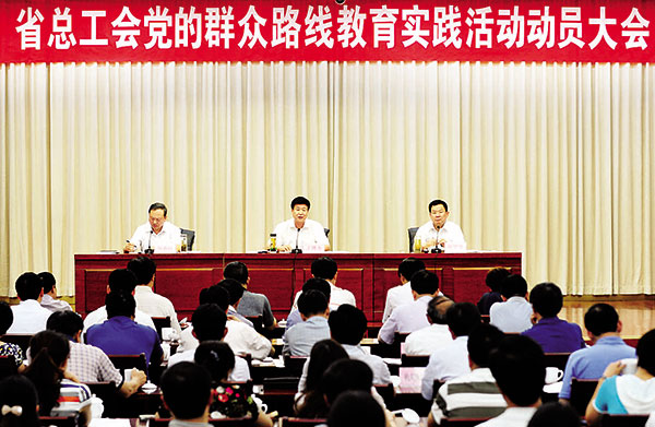 王增力指出,开展以为民务实清廉为主要内容的党的群众路线教育实践活动,是我们党在新形势下坚持党要管党、从严治党的重大决策。这次教育实践活动,把主要任务聚焦到作风建设上,通过“照镜子、正衣冠、洗洗澡、治治病”,集中解决“四风”问题,实现党的自我净化、自我完善、自我革新、自我提高,非常及时也非常必要。所以,我们一定要倍加珍惜这次教育实践活动的机会,把它当作一次求医问药、排毒治病、强身健体的宝贵机会,站在更好地履职尽责、团结带领广大职工为河北奋进崛起而奋斗的高度,以强烈的责任感、使命感、危机感投入到活动中去。严格按照中央和省委的要求,聚焦“四风”问题,贯彻“四句话”总要求,搞好六项行动,建好四项制度,把规定动作做到家,把自选动作做出彩,努力通过活动克服不足、解决问题、修正错误,使我们的思想境界有新提高,作风更加优良、战斗力更加强大、工作更加出色,把党的工运事业再向前推进一大步。