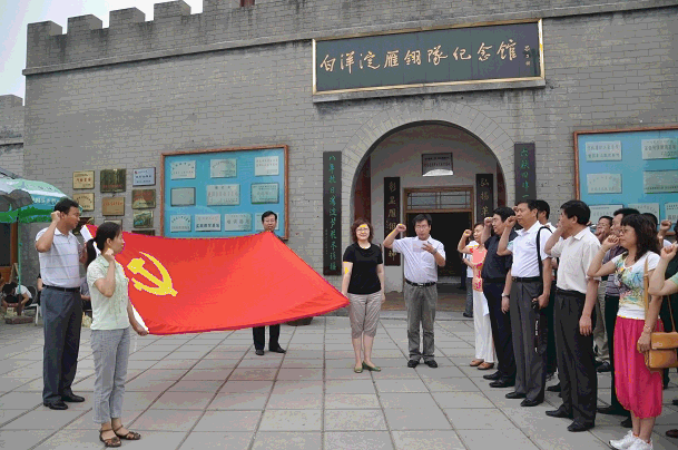 为迎接中国共产党建党89周年纪念日,2010年6月29日,市www.365466.com_365bet登录地址_365体育app安装组织60余名党员到安新白洋淀雁翎队纪念馆以重温党的历史、缅怀革命先烈、重走红色之路的形式,隆重纪念党的生日,使每名党员经受了一次终身难忘的红色洗礼。