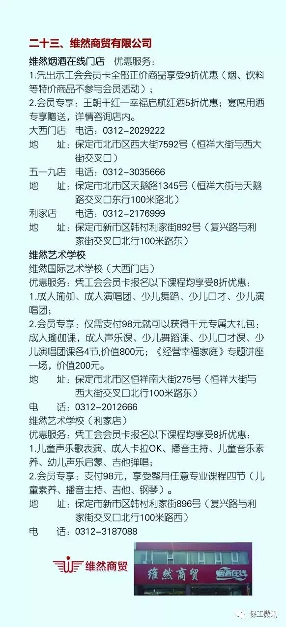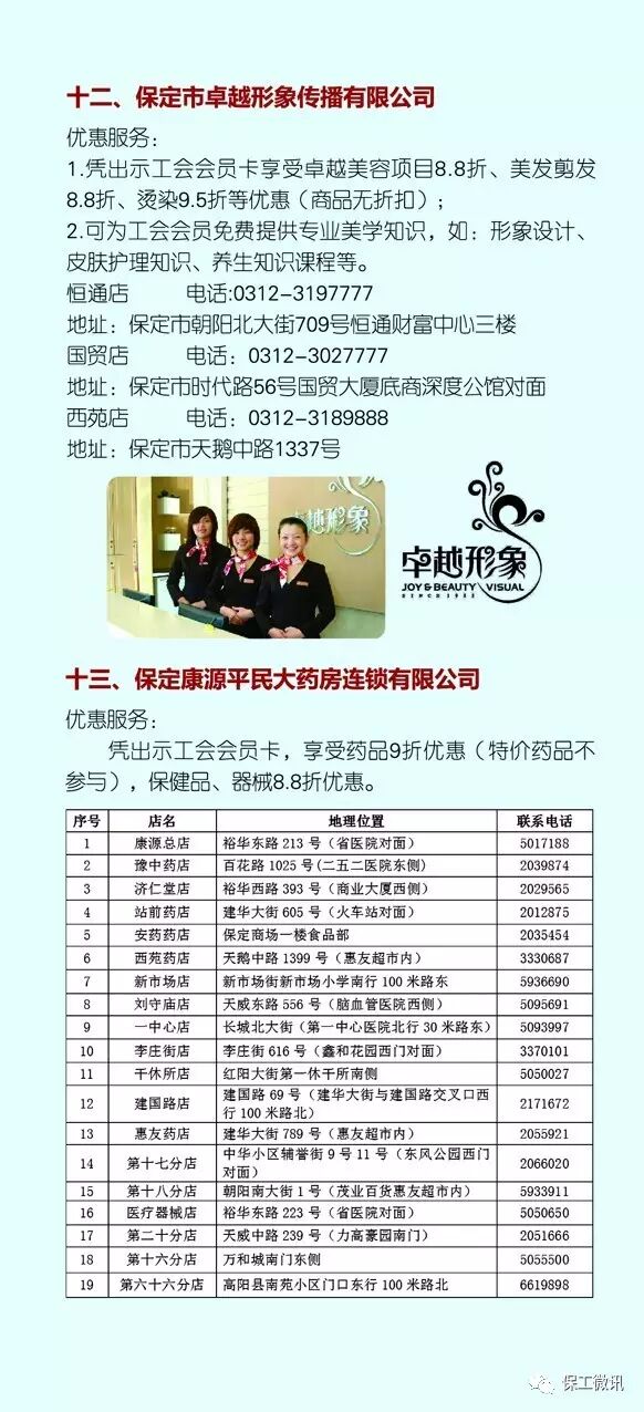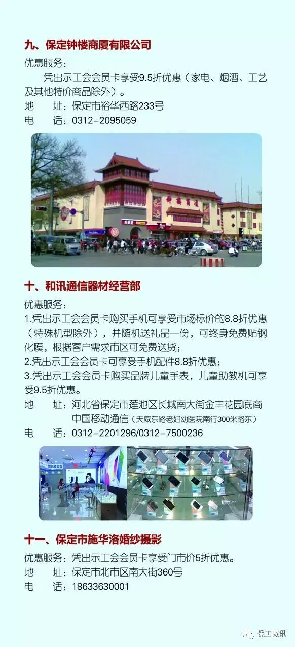 保定市“河北工会会员卡”特约合作单位名册(一)