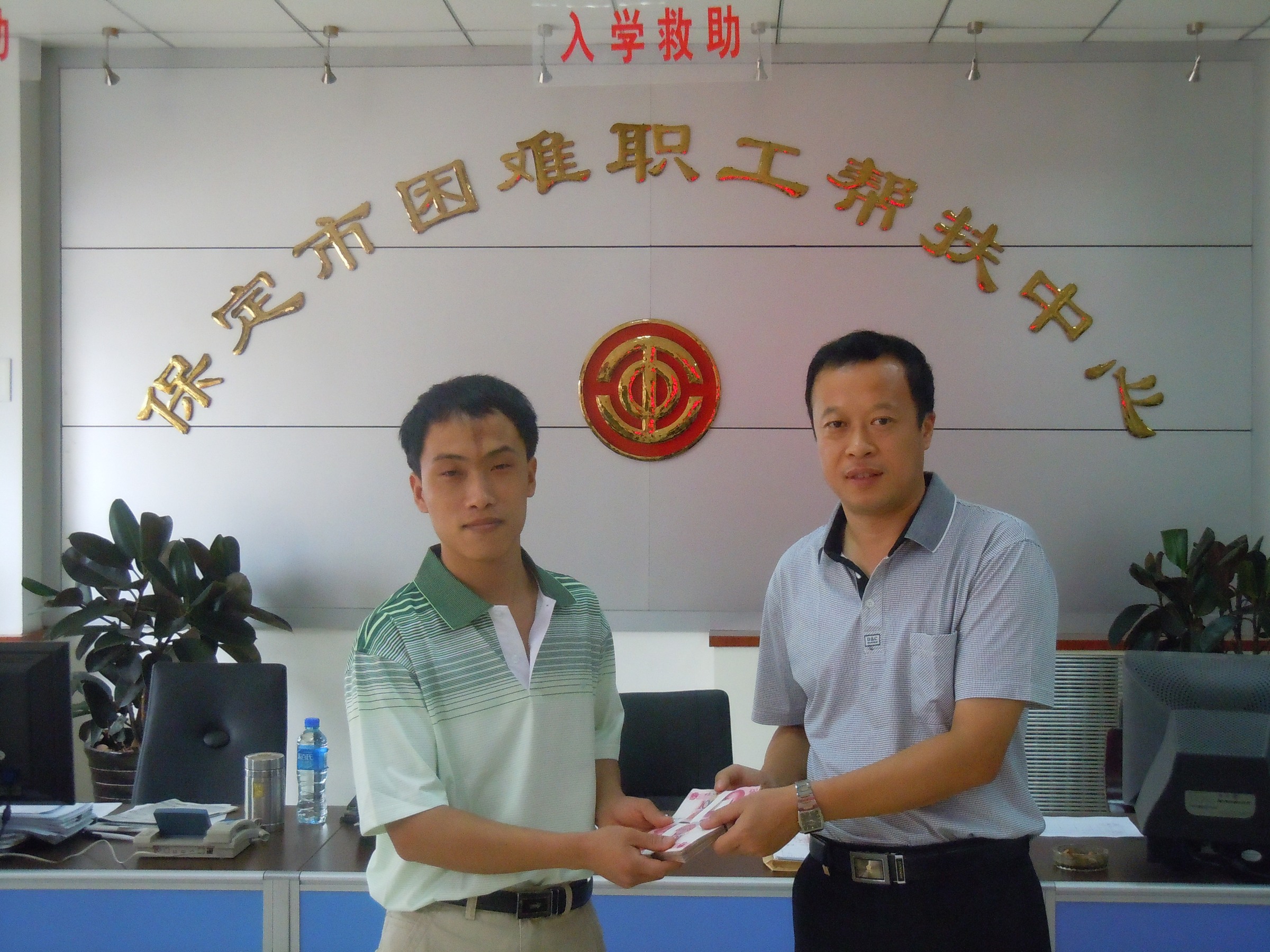 2011年8月31日,市www.365466.com_365bet登录地址_365体育app安装党组副书记、副主席文霖,市www.365466.com_365bet登录地址_365体育app安装党组成员、副主席杨占辉为寒门学子发放入学救助金和“助学育才”联系卡。