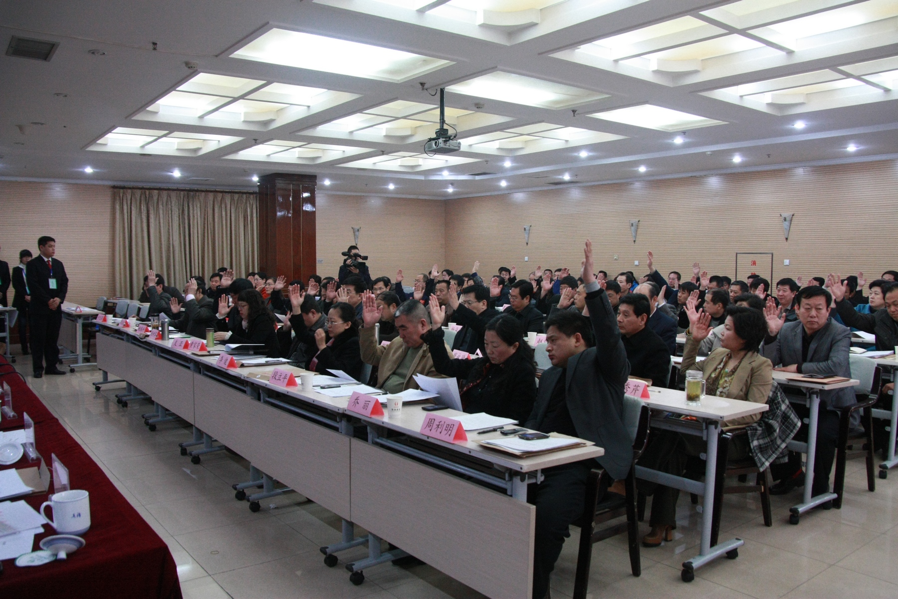 文琪主席代表市总第十七届常委会作工作报告。报告对2012年工会工作进行了总结回顾,市总承担市委市政府和省总考核目标,以及承担的十八大安保、驻村驻企帮扶、企业工作室建设和项目改造、维权维稳、处置突发事件等工作均圆满完成。2012年,全市工会系统先后获得市级以上表彰奖励35项, 综合排位在全省继续保持先进。《报告》提出今年全市工会工作的总体要求是:以党的十八大精神为指导,紧紧围绕全市“抓发展、抓稳定、抓民生、抓环境、抓党 建”工作大格局,牢牢把握“四个服务”工作目标,认真落实市委“实干兴市、清正为民”和市总“高端定位、创先争优”总体要求,奋力实现“五个创新突破”, 为实现我市全面建成小康社会作出新贡献。《报告》就深入学习贯彻党的十八大精神,全力推进建设经济强市和谐保定跨越发展作出了具体部署。一是动员百万职工投身经济建设主战场,为实现我市跨越发展做贡献。突出抓好重点领域劳动竞赛,大力弘扬工人阶级伟大品格和劳模精神,深入开展社会主义核心价值体系主题学习教育活动。二是始终站在协调劳动关系第一线,为构建和谐社会善美保定做贡献。着力构建和谐劳动关系。依法推动企业民主管理。全面落实工资集体协商“三年规划”。三是坚持不懈为职工办好民生实事,为使改革发展成果惠及全体职工做贡献。进一步完善为职工办实事的长效机制,丰富为职工办实事的服务内容,拓展为职工办实事的新领域。四是以改革创新精神全面推进工会自身建设,不断提高工会工作科学化水平。狠抓基层组织建设,狠抓工会经费收缴,狠抓工作落实。