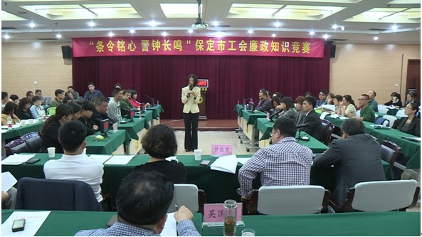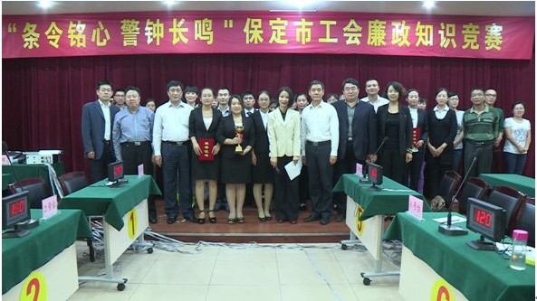 为深入推进党的群众路线教育实践活动,进一步加强全市工会系统党风廉政建设,增进各级工会干部廉政知识素养,有效检验为期两个半月的廉政知识集中学习的成果,市www.365466.com_365bet登录地址_365体育app安装于9月23日举办了以“条令铭心、警钟长鸣”为主题的廉政知识竞赛。全市工会系统的28支代表队、共84名选手参赛。比赛分为必答题和抢答题两个环节。在必答题环节,选手们反应迅速、沉着应答,充分展示了他们对廉政知识的熟练掌握程度和扎实的基本功;在抢答题环节,各代表队思维敏捷、奋力争抢,充分展示了他们对廉政知识储备与积累的强大自信。经过4轮的淘汰选拔后,8支代表队顺利地进入了决赛。决赛中,在必答题、抢答题之外还增设了风险题,题目依难度大小划分为20分、30分、50分三个档次,这也是拉开分差、展示实力的关键环节,成为了现场观众瞩目的焦点。经过激烈角逐,南市区代表队荣获一等奖;曲阳、容城、市总三支部荣获二等奖;唐县、新市区、市总一支部、定兴荣获三等奖。
