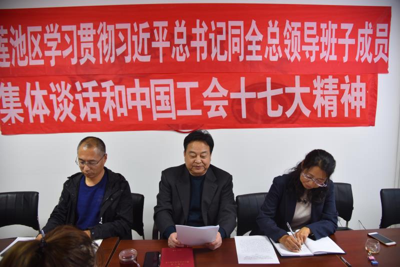莲池区www.365466.com_365bet登录地址_365体育app安装主席张金彪带领党员干部传达学习了习近平总书记同全总新一届领导班子成员集体谈话和中国工会十七大精神主要内容。与会党员干部进行了认真学习讨论,大家一致认为,要认真学习领会习近平总书记关于工人阶级和工会工作的重要论述,始终牢记“四个意识”,坚定“四个自信”,坚决维护习近平总书记党中央的核心、全党的核心地位,坚决维护党中央权威和集中统一领导,深刻领会大会精神,紧密结合各自岗位,扎实工作、创新进取,不断提升自身素质和工作能力,进一步提升工会工作水平。