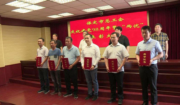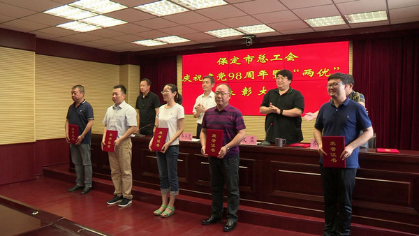 6月27日,保定市www.365466.com_365bet登录地址_365体育app安装举办庆祝建党98周年暨“两优”表彰大会,隆重庆祝中国共产党成立98周年,并对市总机关及直属单位13名优秀共产党员、6名优秀党务工作者进行了表彰。市总党组书记、常务副主席乔玉忠,正县级调研员、党组成员文霖,党组成员、副主席杨占辉、齐春刚等班子成员参加,并为优秀党员、优秀党务工作者颁奖。文霖主持会议。