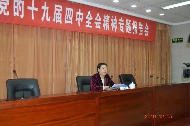 王惠欣指出,党的十九届四中全会审议通过了《中共中央关于坚持和完善中国特色社会主义制度、推进国家治理体系和治理能力现代化若干重大问题的决定》,全面贯彻了习近平新时代中国特色社会主义思想,充分体现了党的十九大精神,深入回答了在我国国家制度和国家治理体系上“坚持和巩固什么、完善和发展什么”这个重大政治问题,集中了全党智慧,反映了人民意愿,是一篇马克思主义的纲领性文献,也是一篇马克思主义的政治宣言书。习近平总书记在全会上的重要讲话,深刻阐述了坚持和完善中国特色社会主义制度、推进国家治理体系和治理能力现代化的重要性和紧迫性,围绕坚定制度自信,深入回答了一系列方向性、根本性、全局性的重大问题,对贯彻落实全会精神提出明确要求,为坚持和完善中国特色社会主义制度、推进国家治理体系和治理能力现代化提供了科学指南和基本遵循。