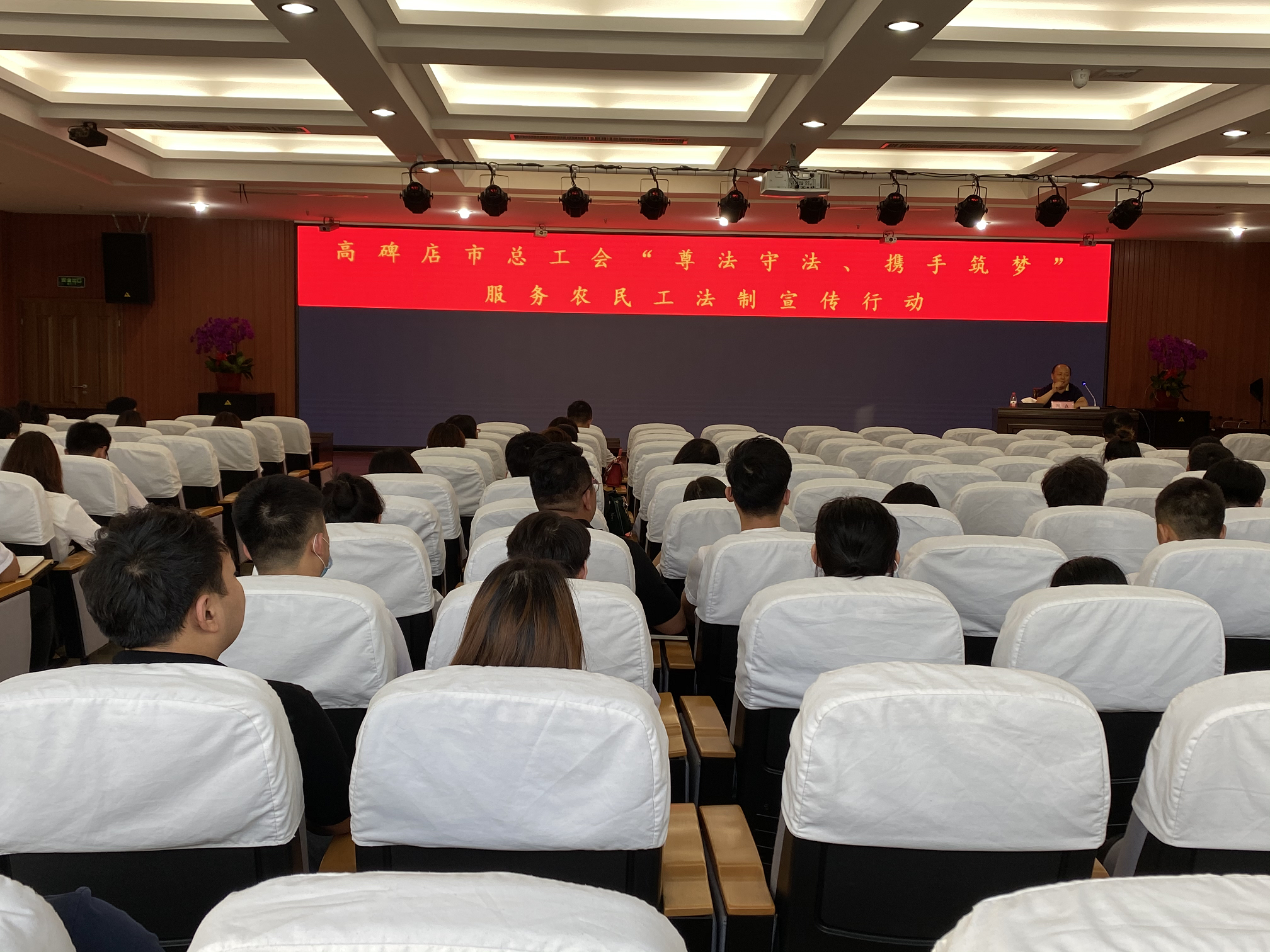 6月2日下午,高碑店市www.365466.com_365bet登录地址_365体育app安装开展“尊法守法·携手筑梦”服务农民工法制宣传和公益法律服务、法律援助行动,邀请专业律师授课宣讲,100余名职工参会学习。