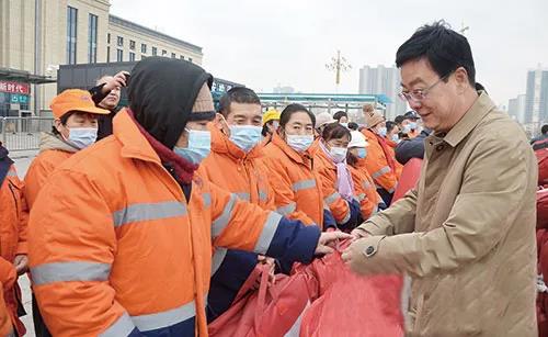 11月27日,市www.365466.com_365bet登录地址_365体育app安装党组书记、常务副主席、一级调研员肖明旺一行到保定火车站西广场,看望慰问在严寒中坚守一线岗位的环卫职工,给他们送去了百余套慰问品,将党和政府以及工会组织的关心关爱送到他们身边。
