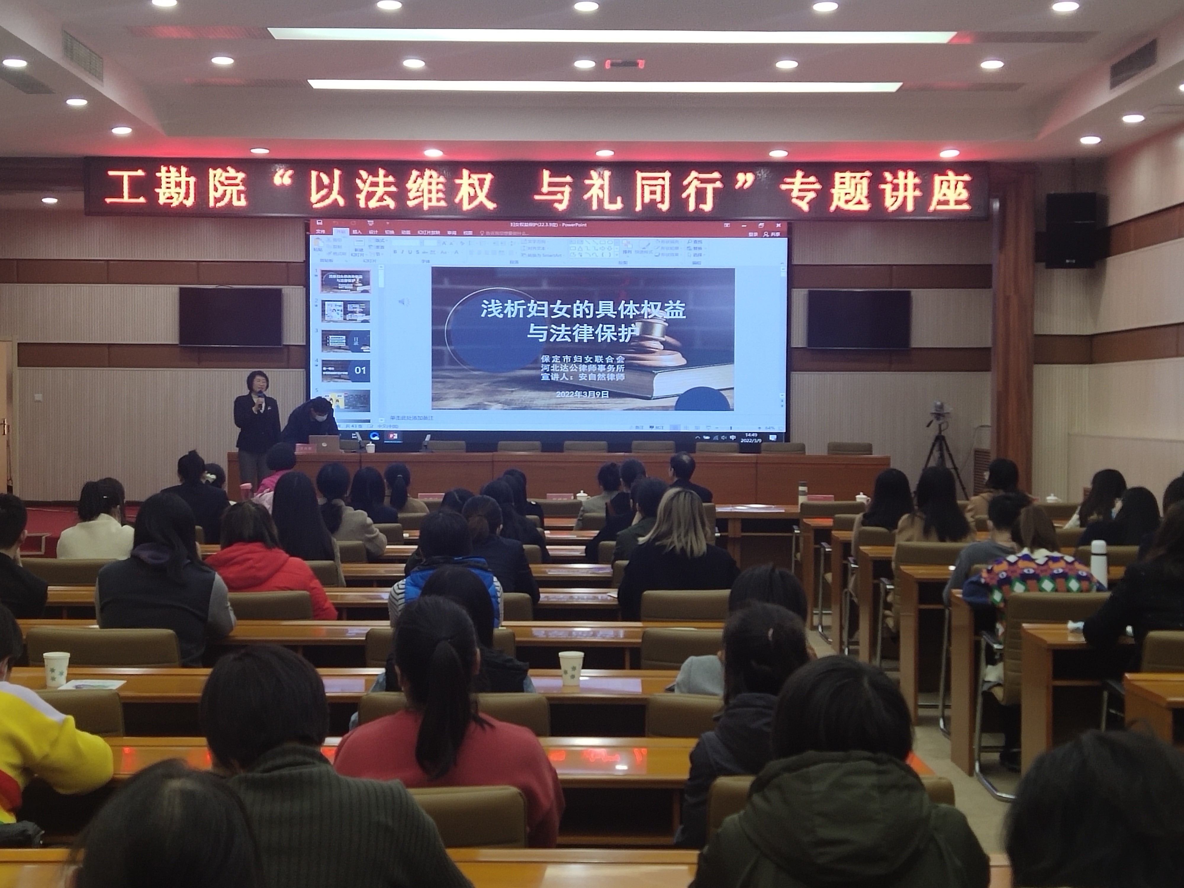 3月9日,保定市www.365466.com_365bet登录地址_365体育app安装联合市妇联在河北省地质工程勘查院开展了“木兰有约”法制宣讲活动。以“以法维权 与礼同行”为主题的专题讲座同日举办。近百名女职工参加活动。