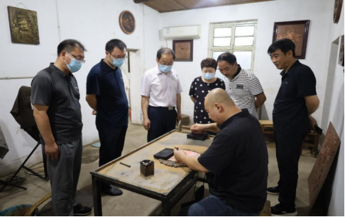 在易水砚有限公司,检查指导组一行得知易水砚又称易水古砚,是中国着名的古砚之一,相传于战国,盛于唐代,为中国制砚之鼻祖,都为易水砚的雕刻艺术传承之悠久、技艺之精湛、风格之独具感叹不已。易水砚有限公司的河北工匠、首席雕刻师崔文龙带领检查指导组观看了砚台工匠现场雕刻工艺。