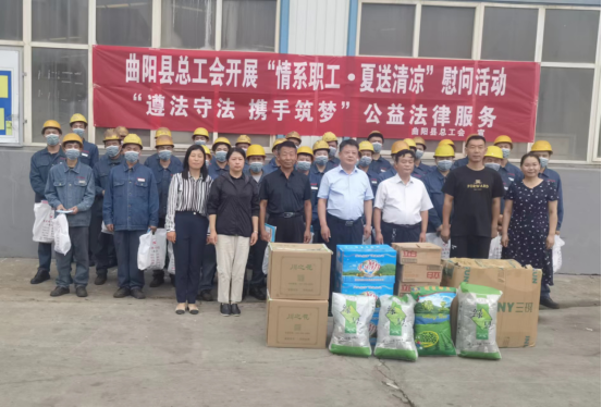 为做好常态化疫情防控形势下的高温作业和高温天气作业劳动保护工作,切实维护广大职工的劳动健康权益,7月27-28日,曲阳县www.365466.com_365bet登录地址_365体育app安装开展了“情系职工 夏送清凉”慰问活动。