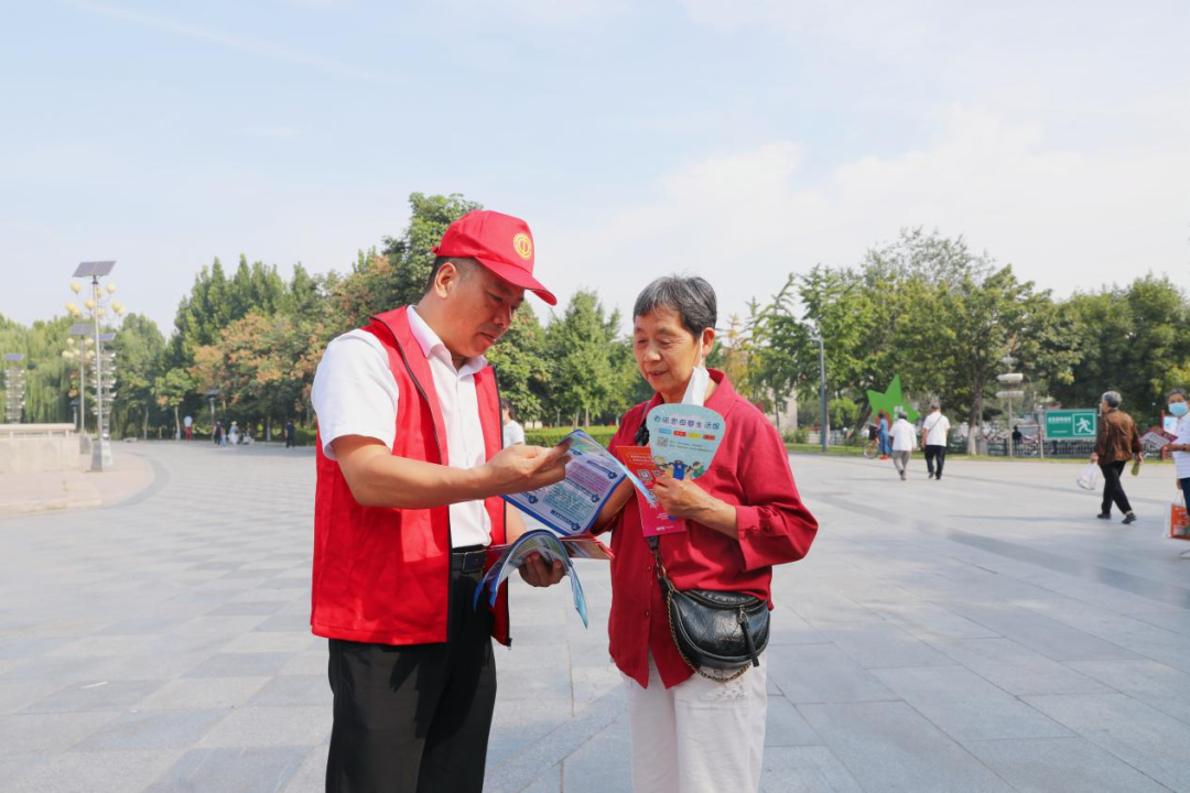 在军校广场,保定市www.365466.com_365bet登录地址_365体育app安装、莲池区www.365466.com_365bet登录地址_365体育app安装工作人员通过悬挂条幅、设置宣传展位、摆放宣传展架、发放宣传资料等方式,向广大群众普及网络安全、个人信息保护法相关知识,认真讲解保护个人信息安全的必要性和防止个人信息泄露的重要性。