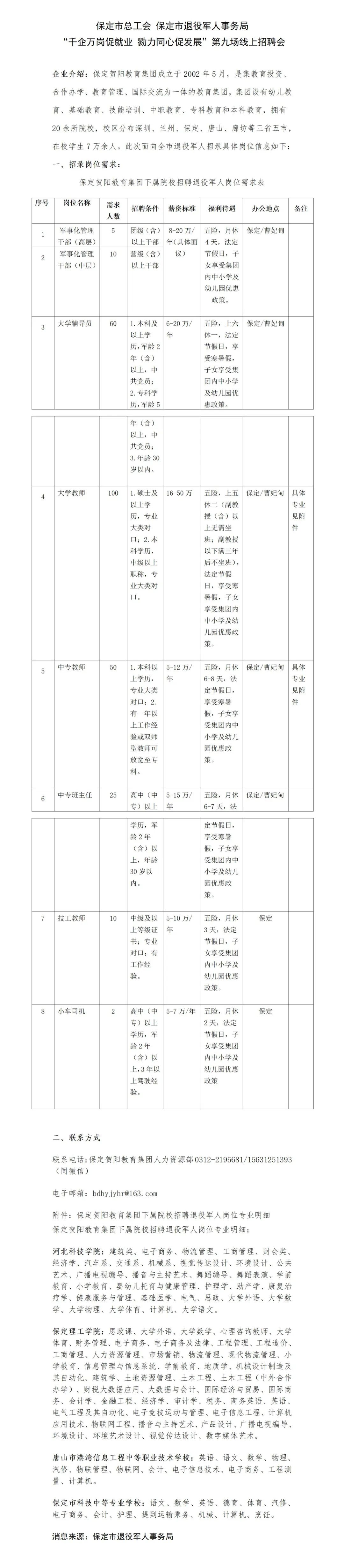 保定市www.365466.com_365bet登录地址_365体育app安装 保定市退役军人事务局“千企万岗促就业 勠力同心促发展”第九场线上招聘会